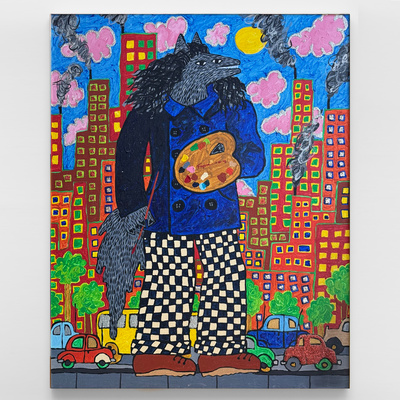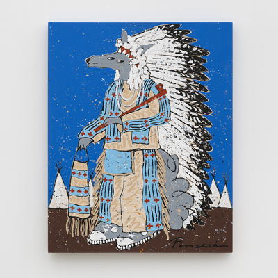 Harry Fonseca, Coyote #34, Portrait of the Artist as a Young Coyote, 1978. Acrylic and glitter on canvas. 30 x 24 inches.