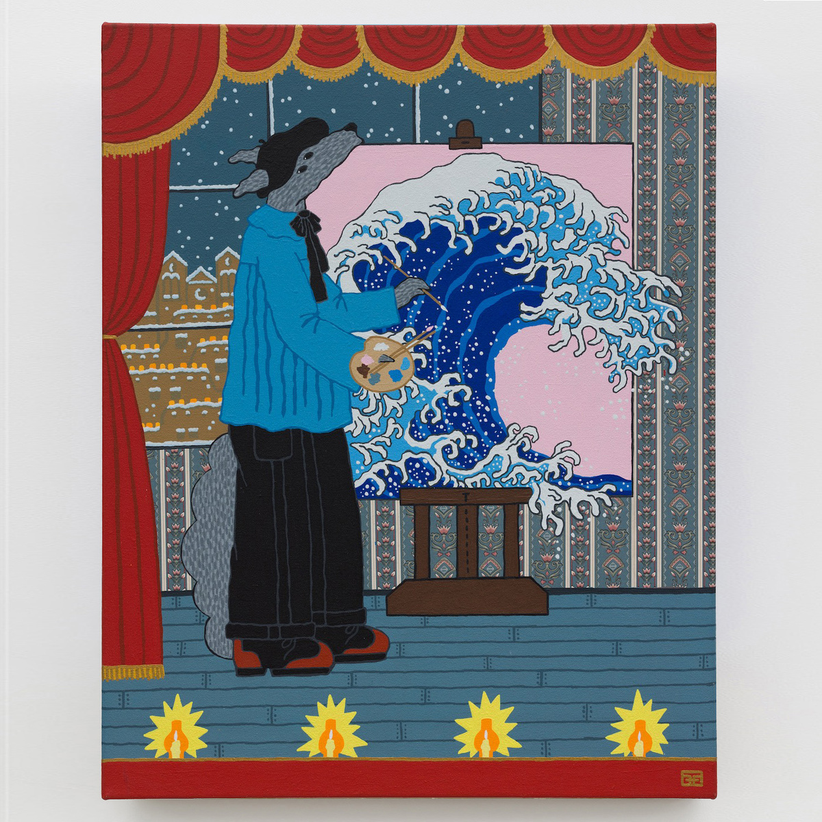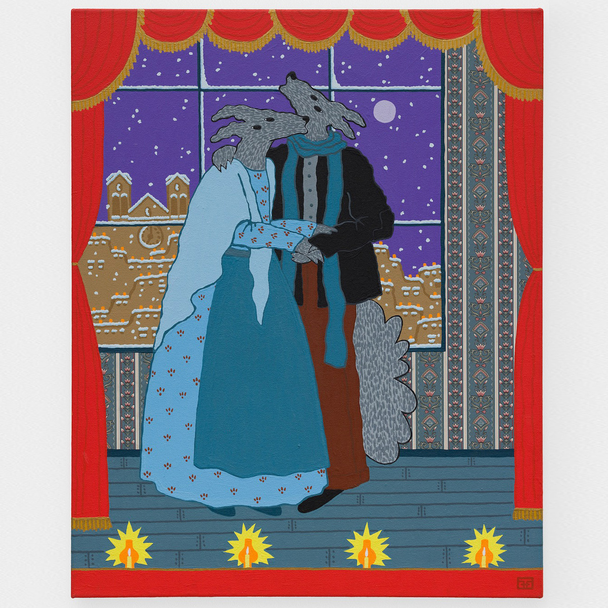 In many works in this exhibition, Fonseca inserted Coyote into stories of the traditional Western artistic canon, like the ballet “Swan Lake,” and operas “Aida" and "La Bohème." However, Fonseca refused depict the endings of these famous stories as tragedies. Fonseca said, “As soon as you’re born, you’re up against a wall. But it’s what you do when faced with obstacles that matters…The thing is, [Coyote and Rose] didn’t kill themselves and they weren’t overcome by evil. Even though they are aware of those evil elements in themselves, they didn’t let outside forces take advantage of them.”