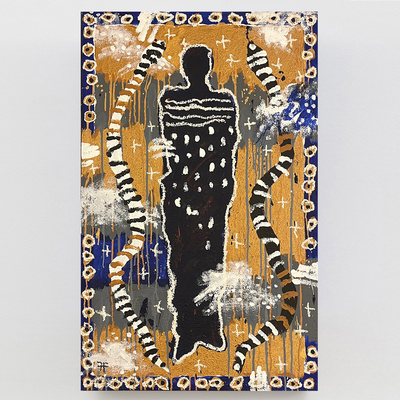 Harry Fonseca, In the Silence of Dusk He Began to Shed His Skin--With the Dawn He would Never Be the Same, 1995. Acrylic on canvas. 48 x 30 inches.