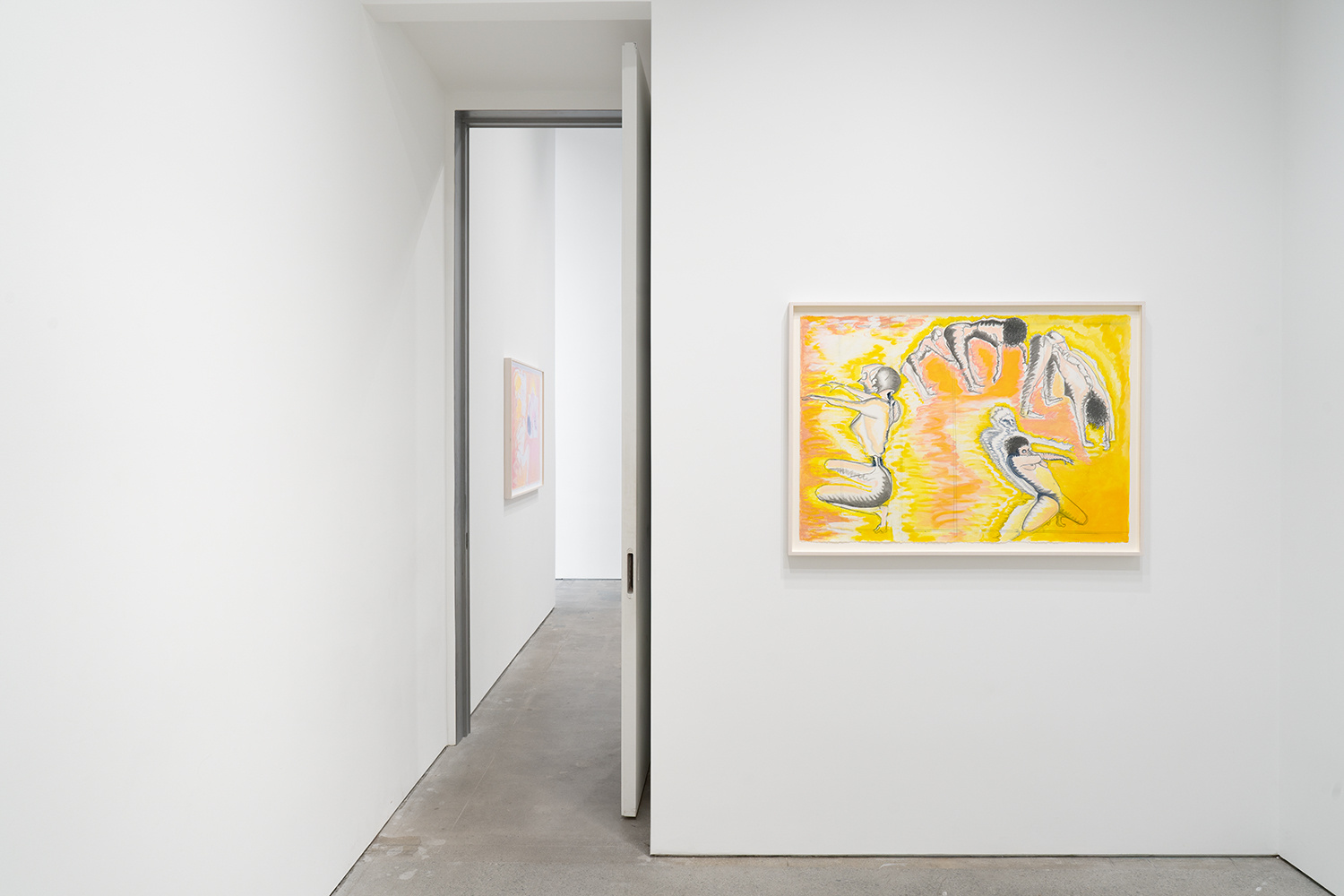 Vanessa Conte, APOLLONIA (Three), 2024. Oil stick, oil paint, graphite, and acrylic on paper. 30 1/2 x 43 inches, unframed; 33 1/4 x 47 inches framed.