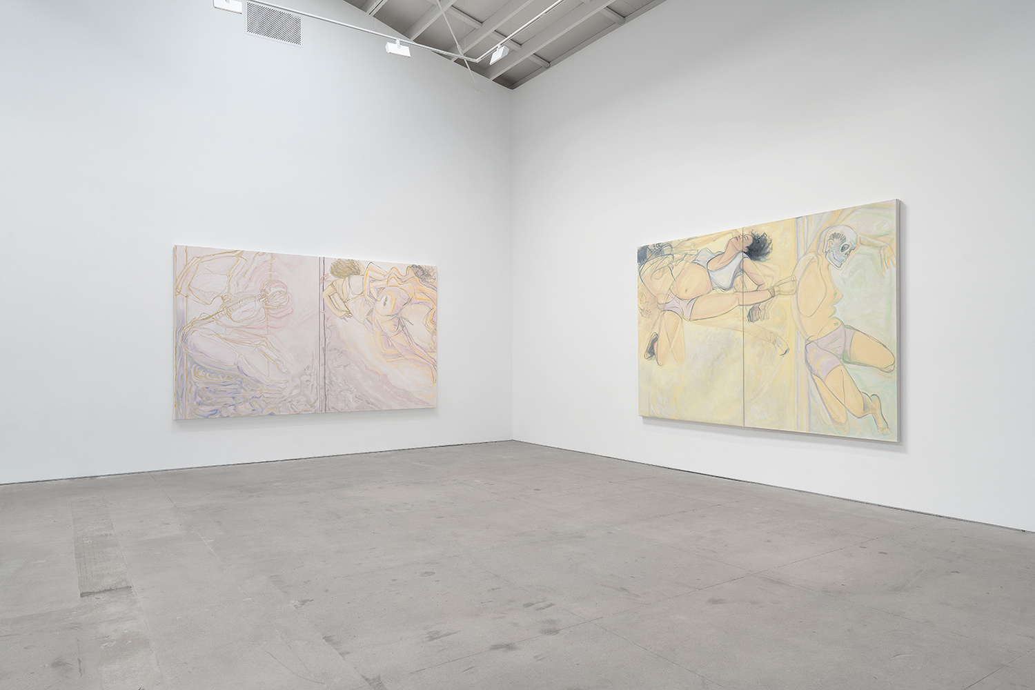 Vanessa Conte, SIBLINGS, 2024. Oil on canvas. Two canvases each 72 x 60 inches; Overall 72 x 120 3/8 inches.