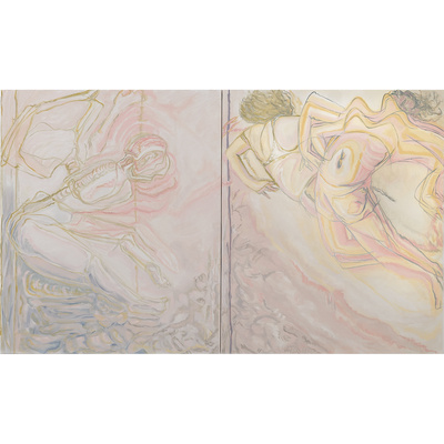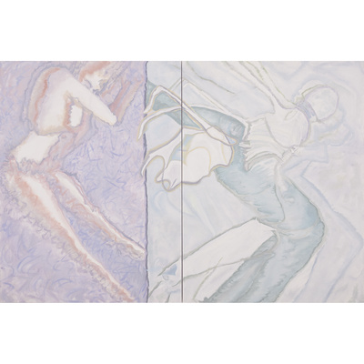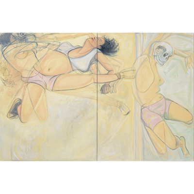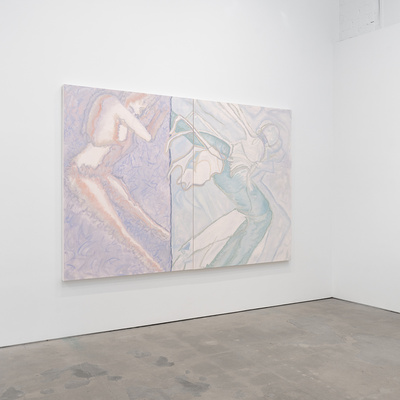 Vanessa Conte, ANGELA, 2024. Oil on canvas. Two canvas each 72 x 54 1/4 inches; Overall 72 x 108 1/2 inches.