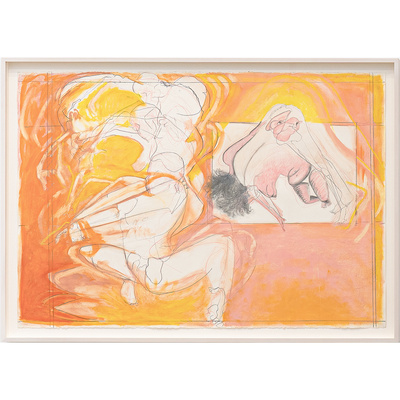 Vanessa Conte, APOLLONIA (Four), 2024. Oil stick, oil paint, graphite, and acrylic on paper. 30 1/2 x 43 inches, unframed; 33 1/4 x 47 inches framed.