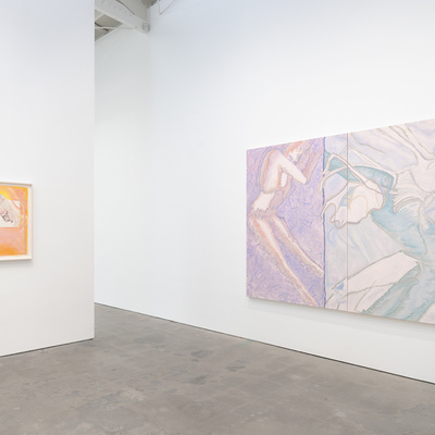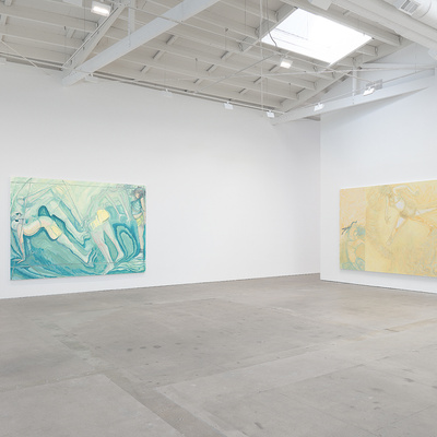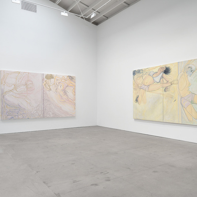 Vanessa Conte, ULTRA, 2024. Oil on canvas. Two canvases each 72 x 54 1/4 inches; Overall 72 x 108 1/2 inches.